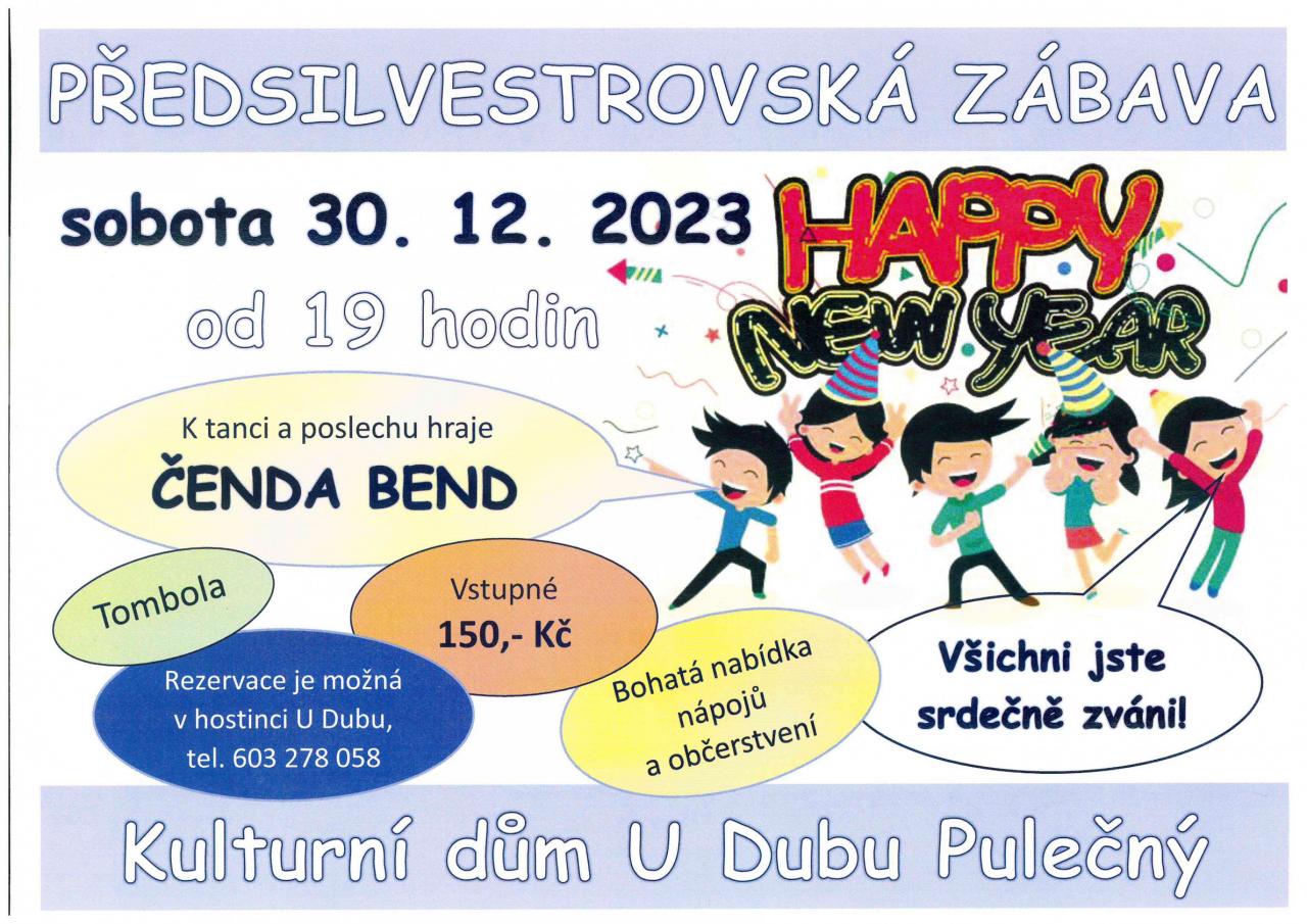 Kdy: v sobotu 30. 12. 2023 Kde: kulturní dům U Dubu V kolik: od 19. hodin Vstupné : 150 Kč