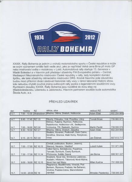 Přehled uzavírek Rally Bohemia 1