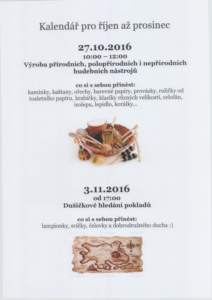 Program "Tvořivého klubíka" říjen - prosinec 2016 1